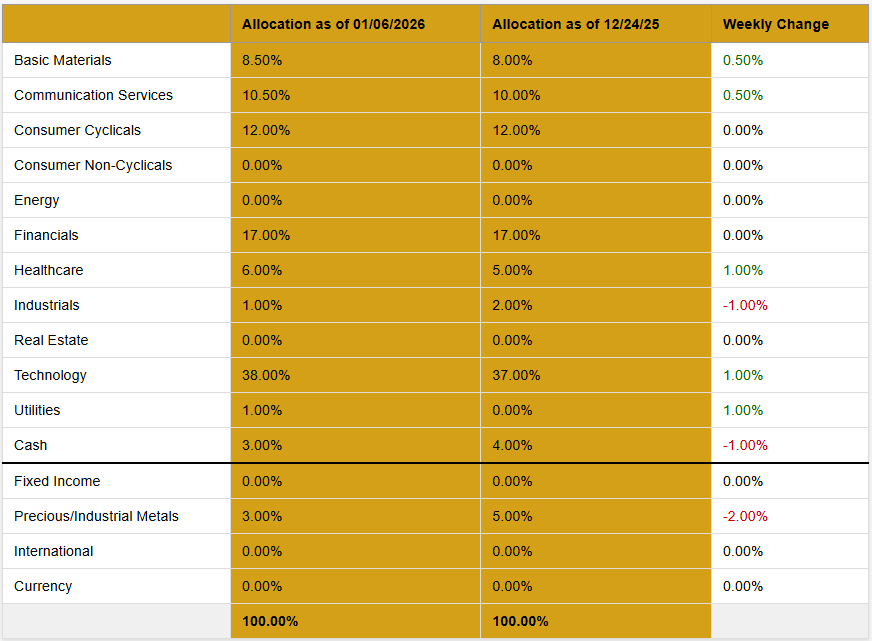 Our process seeks to align portfolios with favorable market and sector trends while avoiding areas showing sustained weakness. We actively monitor sector participation and price behavior, as increasing demand within a sector may signal improving conditions. Sectors demonstrating renewed strength may be evaluated for addition into our investment models. This approach is designed to remain adaptable to changing market conditions.