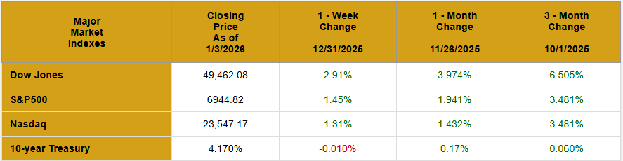 Welcome to our weekly market update. This newsletter is designed to provide you with current market data, investment insights, and educational information about market trends and strategies. The content herein represents our observations and analysis of market conditions and is intended for informational and educational purposes only. It does not constitute personalized investment advice or a recommendation for any specific security or strategy.