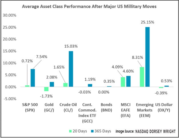 Emerging markets and crude oil often show notable gains post-conflict.