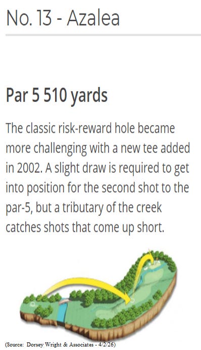 As a reminder, at Strong Tower, we utilize both fundamental and technical data in the management of our clients’ portfolios. We use the services of Dorsey Wright & Associates, for some of our research, charting, market commentary and thought leadership. On that note, there was a great article this past week regarding the Masters. I would like to share that article with you.